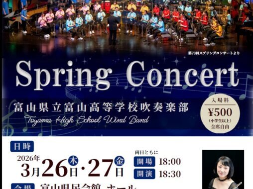 3月26日(木)、27日(金)に、富山県民会館にて吹奏楽部スプリングコンサートを開催いたします。 皆様のご来場、お待ちしております。