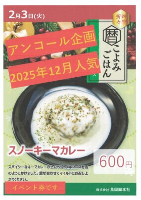 2月の食堂のフェアメニューです。